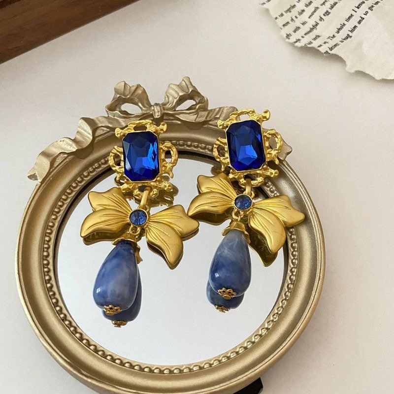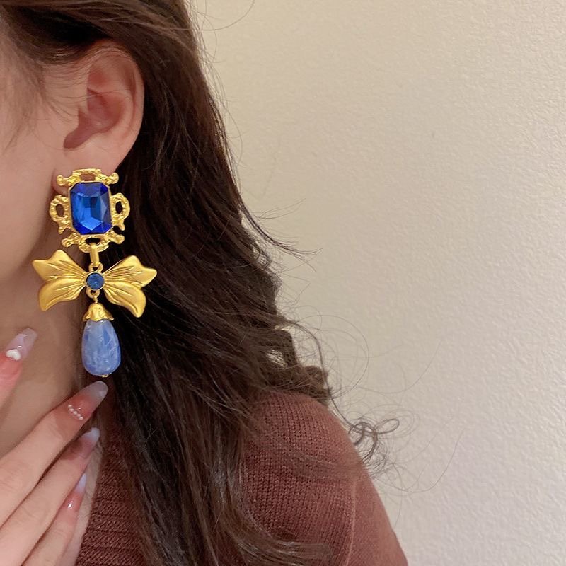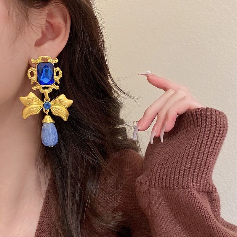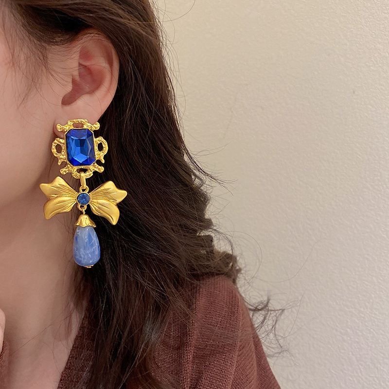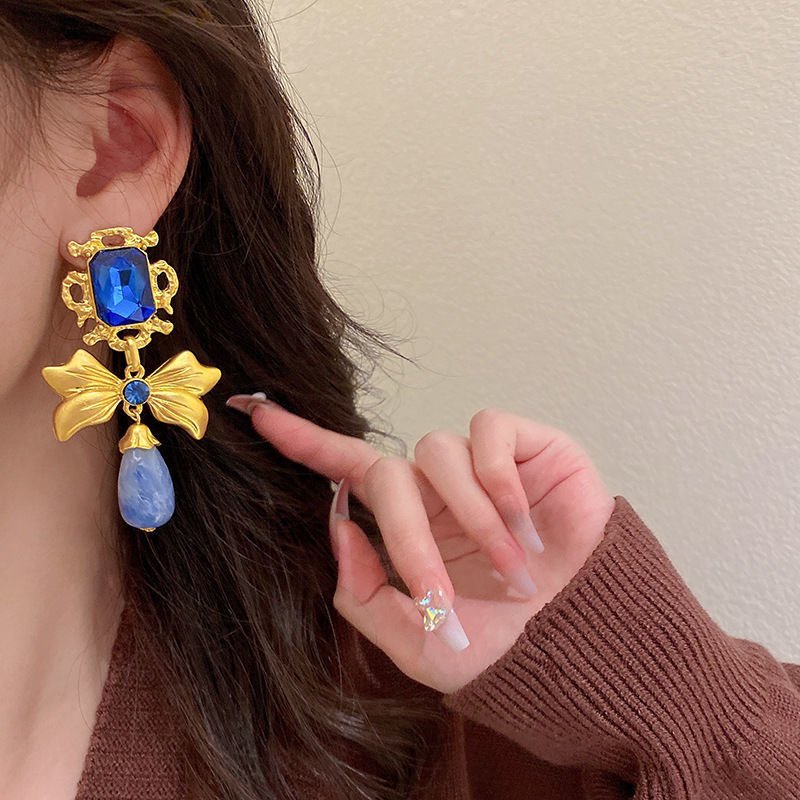 925 silver diamond bow earrings retro