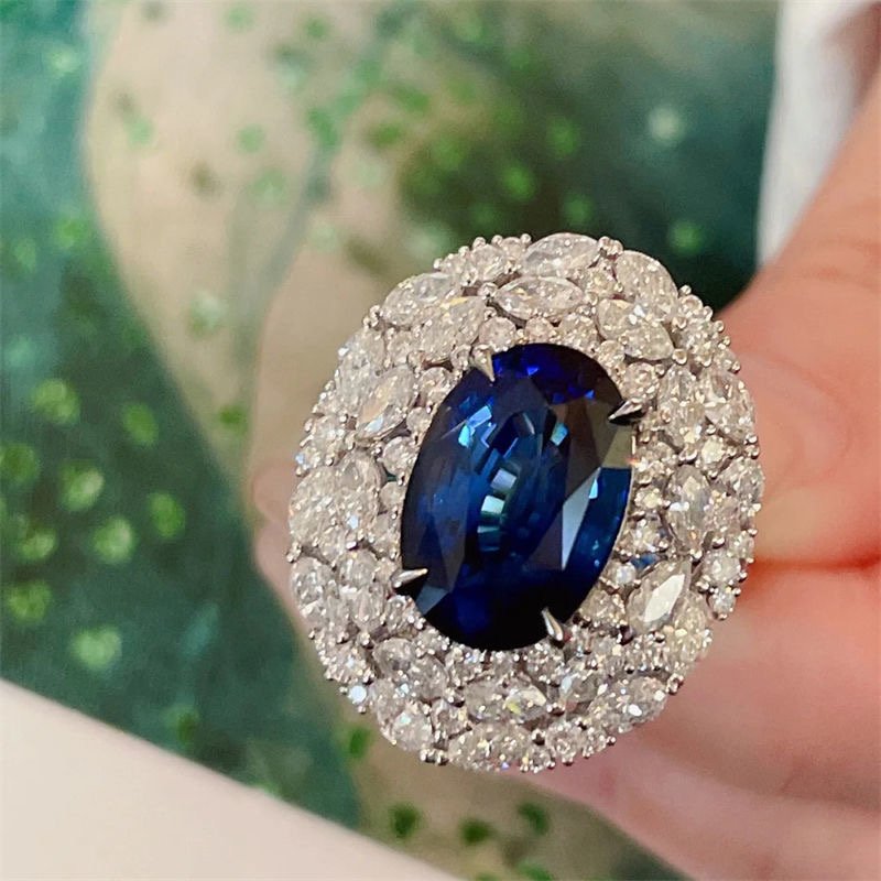 Bright blue gemstone full of diamond ring fingers quantity