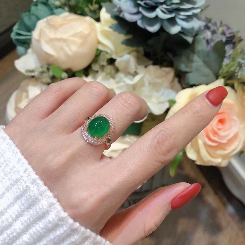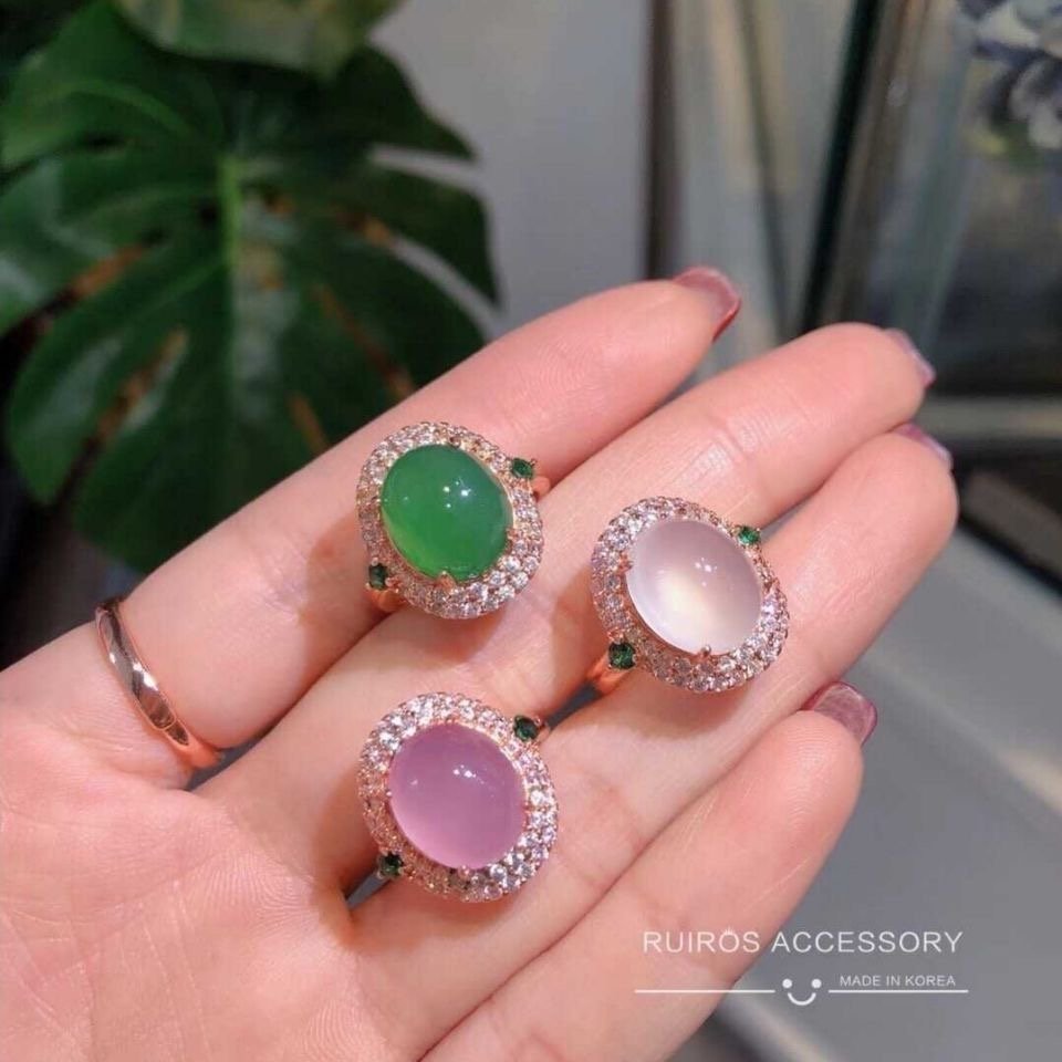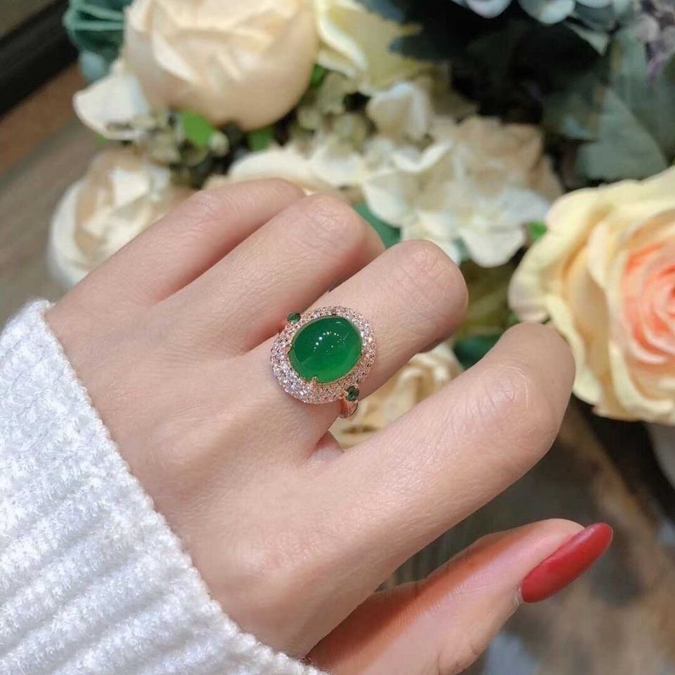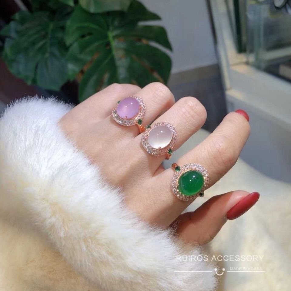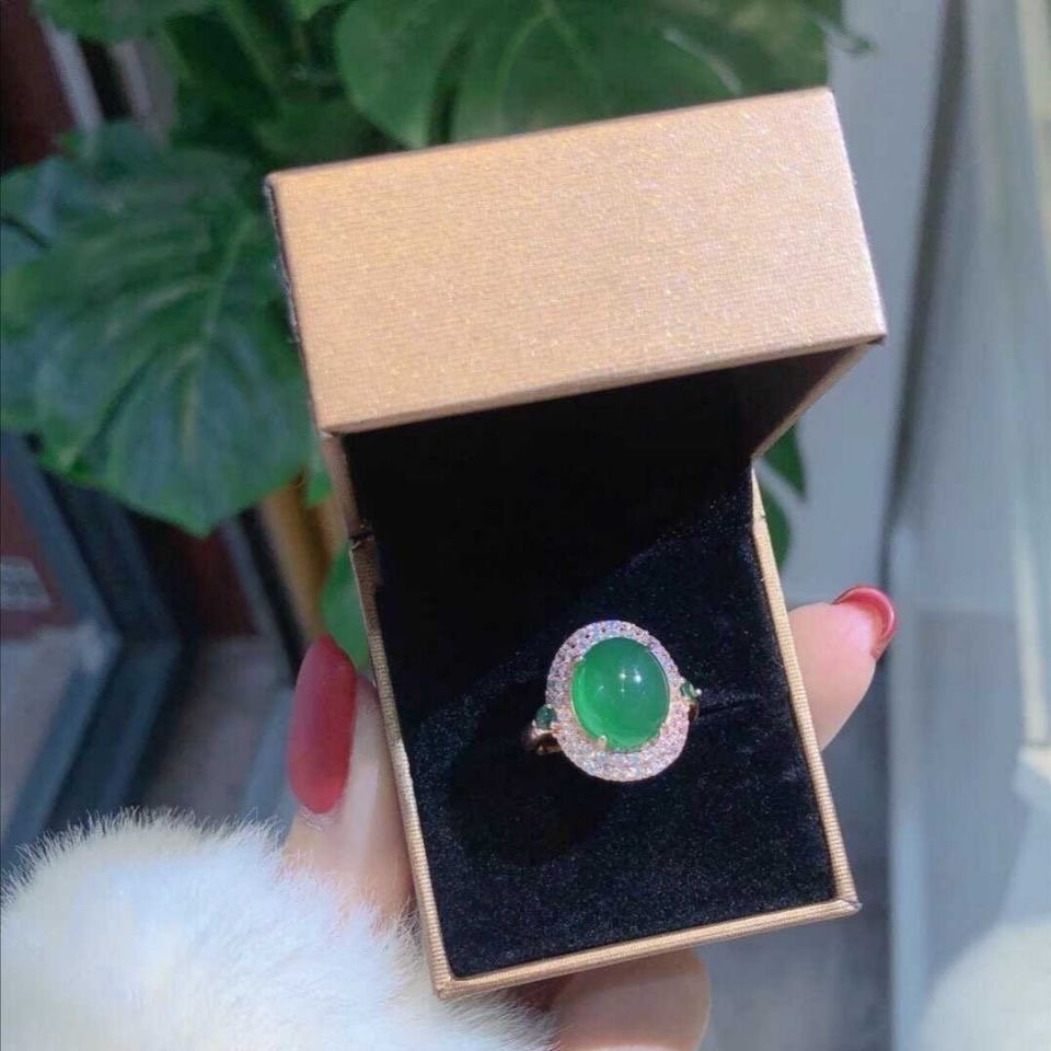 Natural chalcedony glass pigeon eggs inlay ring quantity